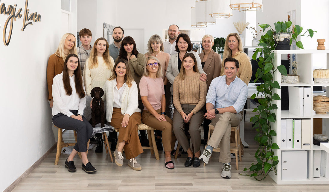 Bei MagicLinen gehen wir mit akribischer Liebe zum Detail und einem unerschütterlichen Bekenntnis zur Authentizität an unser Handwerk heran. Jedes unserer Produkte wird sorgfältig entworfen und in liebevoller Handarbeit in Vilnius, Litauen, gefertigt. Wir sind überzeugt, dass es die kleinen Details sind, die im Leben wirklich zählen, und deshalb verzieren wir unsere Kreationen mit magischen Details wie Rüschen, Pompons und Kokosnussknöpfen. Darüber hinaus bieten wir eine umfangreiche Auswahl an satten Farbpaletten für Heimtextilien und Kleidung, damit Sie Ihren einzigartigen Stil zum Ausdruck bringen und Ihr wahres Ich entfalten können.