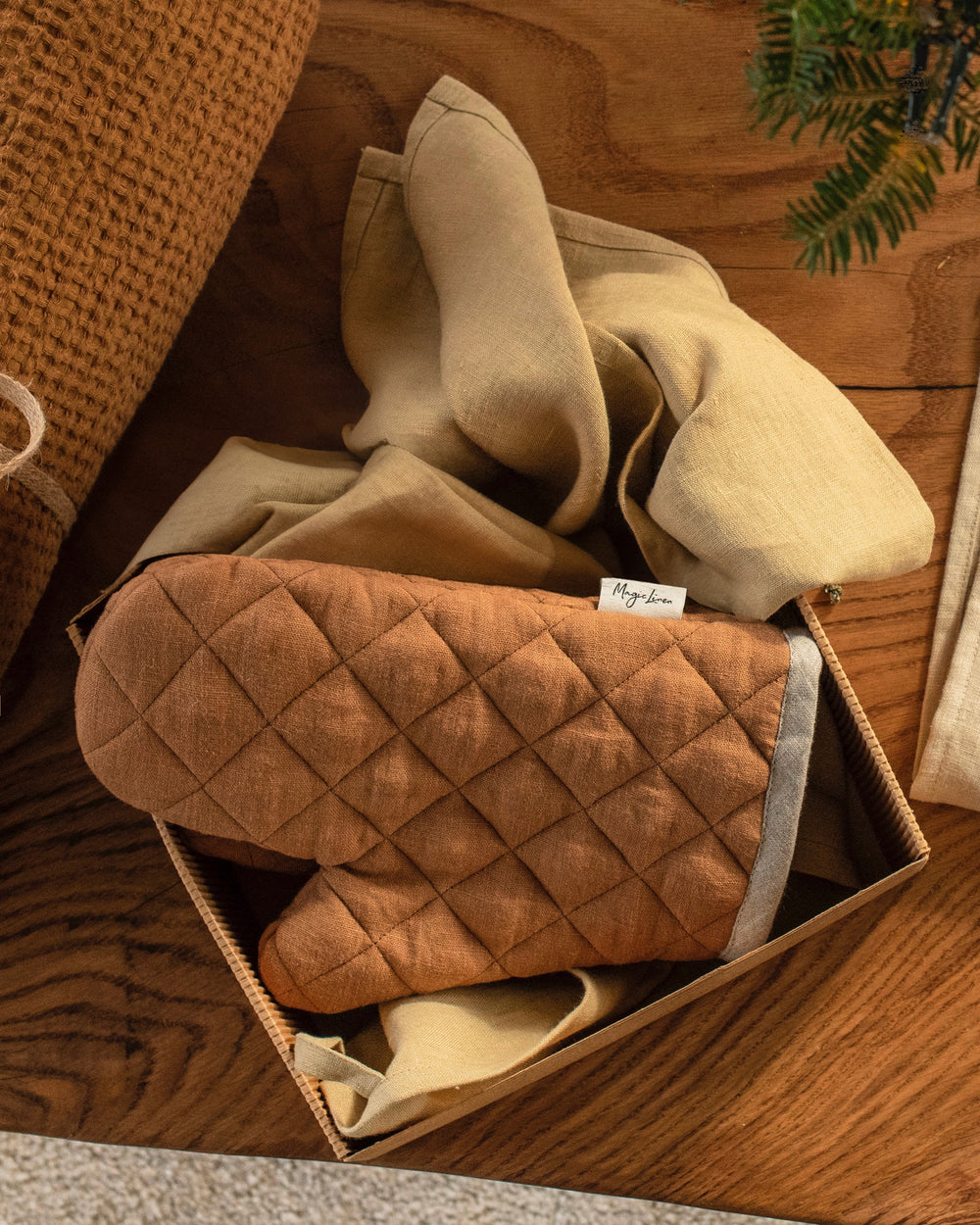 Ofenhandschuh aus Leinen (1 Stück) in Zimt