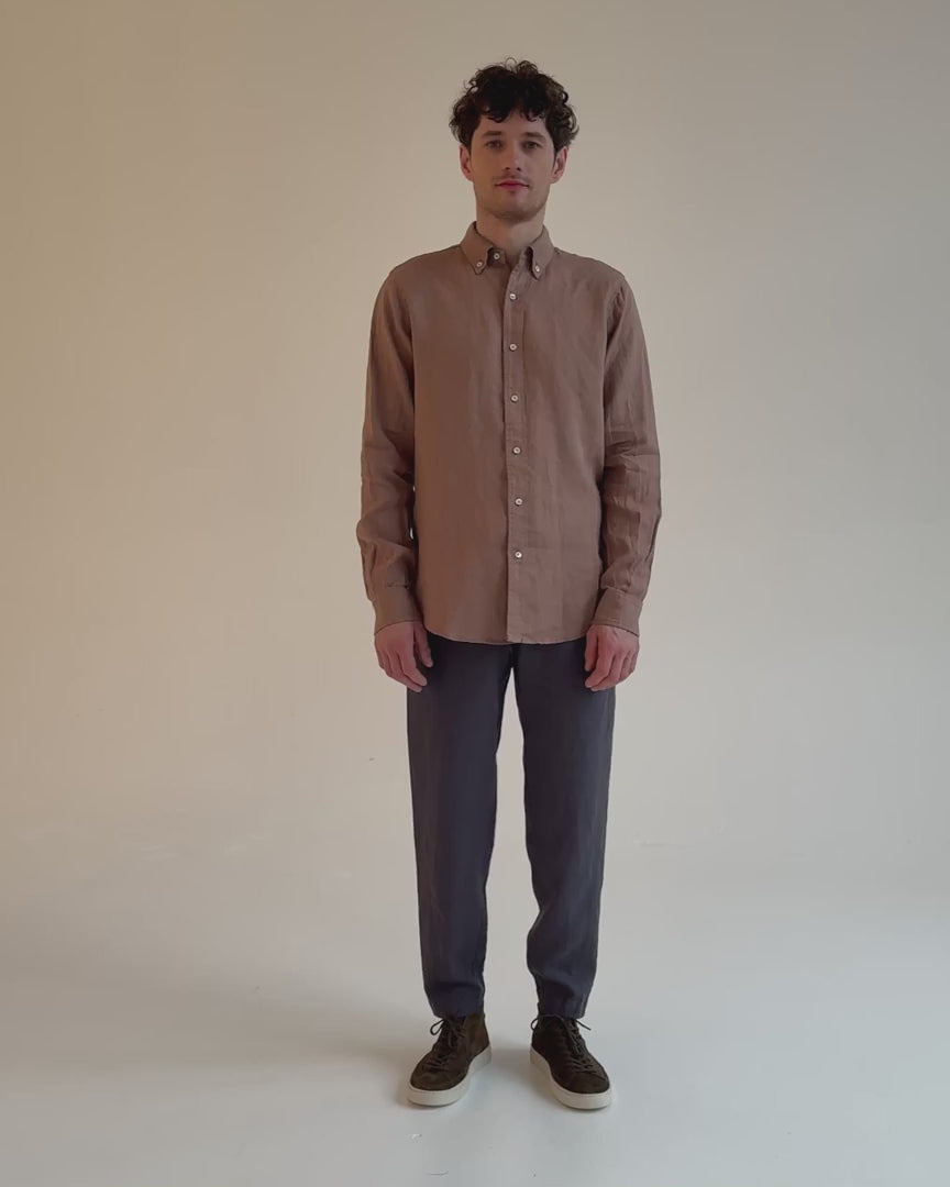 Das klassische Herren-Leinenhemd SINTRA in Pastellbraun ist ein zeitloses Must-have für mühelose Eleganz. Aus 100 % atmungsaktivem Leinen gefertigt, bietet dieses Hemd höchsten Tragekomfort und hält Sie zu jeder Jahreszeit kühl und stilvoll. Die taillierte und dennoch entspannte Passform, die Knopfleiste vorne und die dezente Melange-Textur sorgen für einen eleganten und zugleich lässigen Look, perfekt für formelle und entspannte Anlässe. Krempeln Sie die Ärmel hoch für einen entspannten Look oder tragen Sie es unter einem Blazer für einen eleganten Touch – dieses vielseitige Kleidungsstück passt sich jedem Anlass mühelos an.