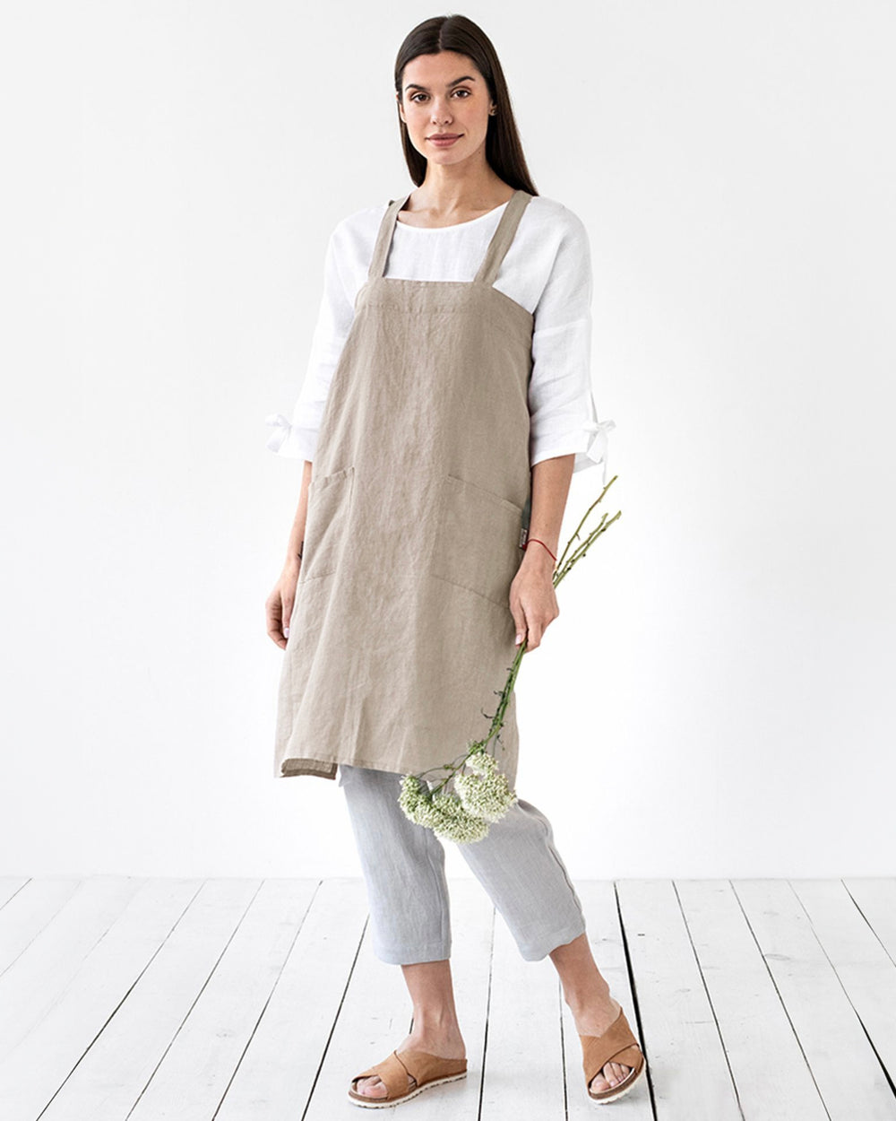 Die japanische Leinenschürze mit Kreuzrücken ist in verschiedenen Farben erhältlich. Bringen Sie Ihre Koch- und Gartenexperimente mit einer stilvollen und funktionalen Leinenschürze auf das nächste Level. Leinen ist strapazierfähig, saugfähig und pflegeleicht und schützt Ihre Kleidung optimal vor Beschädigungen. Unisex-Look und -Passform.