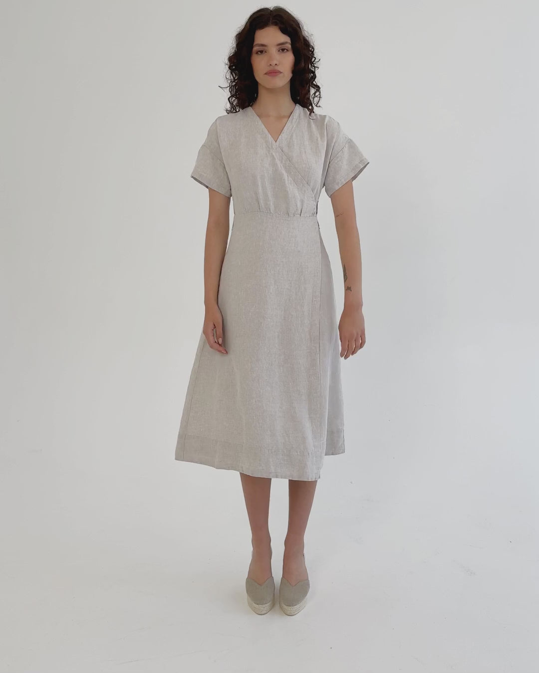 Das leichte und atmungsaktive Wickelkleid PEHOE bietet unbeschwerten Tragekomfort. Es ist aus weichem, natürlichem Melange-Leinen gefertigt und verfügt über einen schmeichelnden V-Ausschnitt, einen verstellbaren Taillengürtel und kurze Ärmel für einen entspannten und zugleich eleganten Look. Das Kleid schmiegt sich eng an den Körper an und ermöglicht so eine individuelle Passform, die sich jeder Körperform anpasst. In Midi-Länge mit versteckten Seitentaschen eignet sich dieses vielseitige Kleidungsstück perfekt für warme Tage oder zum Überziehen bei kühlerem Wetter.