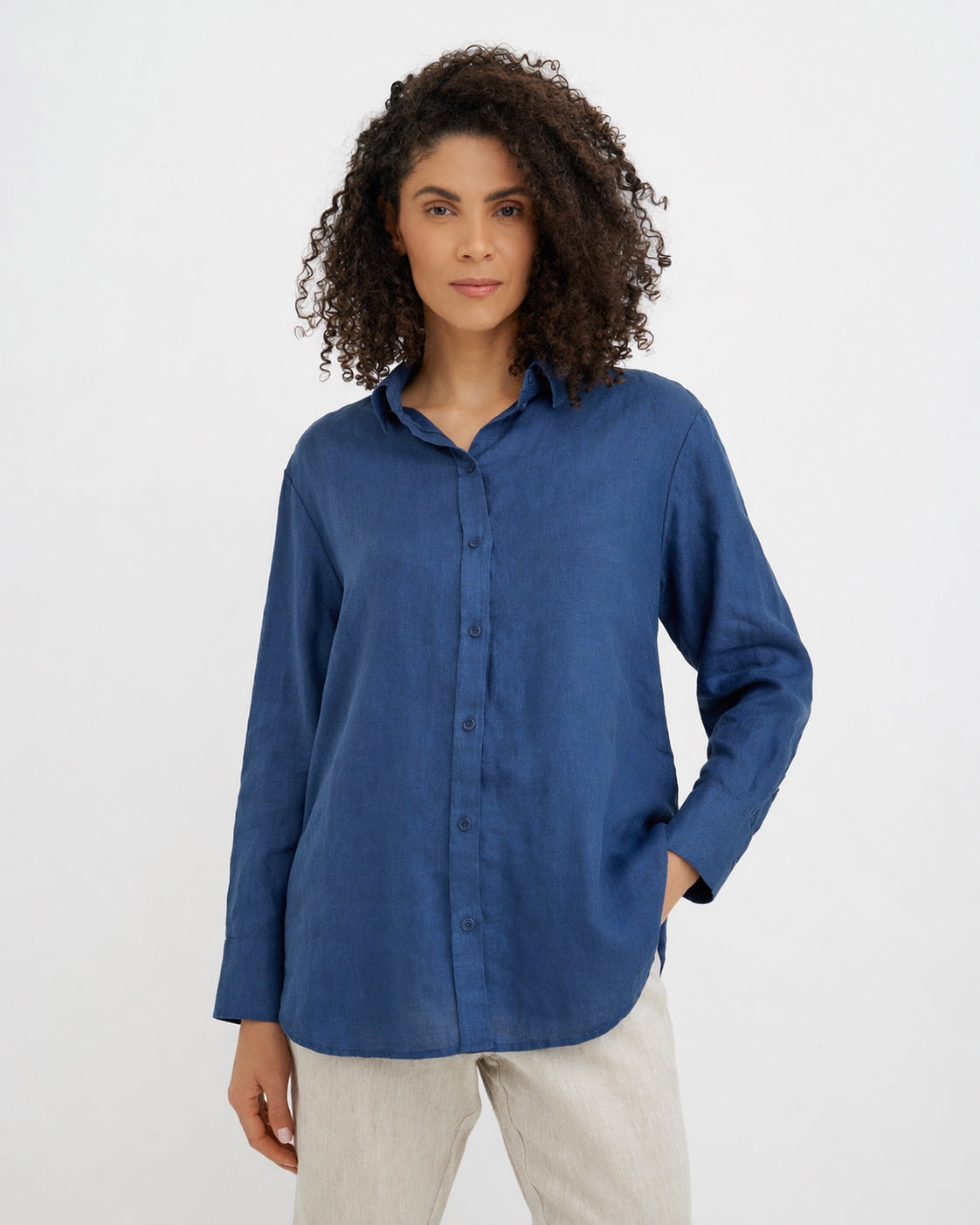 The breathable linen offers substance, making it suitable for transitional seasons and indoor environments.