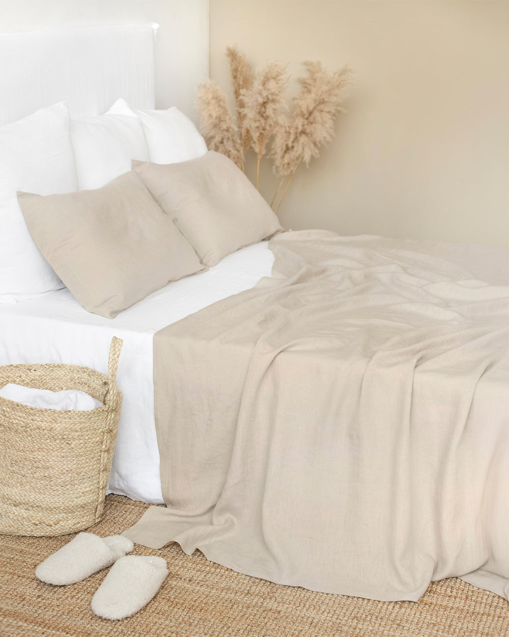 Leinen-Bettlaken in natürlicher Leinenfarbe (Haferflocken). Luxuriös weiche und atmungsaktive Leinenlaken werden zu einem unverzichtbaren Bestandteil jedes modernen Schlafzimmers. Die natürlichen wärmeregulierenden und feuchtigkeitsableitenden Eigenschaften von Leinen garantieren ganzjährig ein angenehmes Tragegefühl. Die Bettlaken können auch als Oberlaken oder Bettüberwurf verwendet werden.