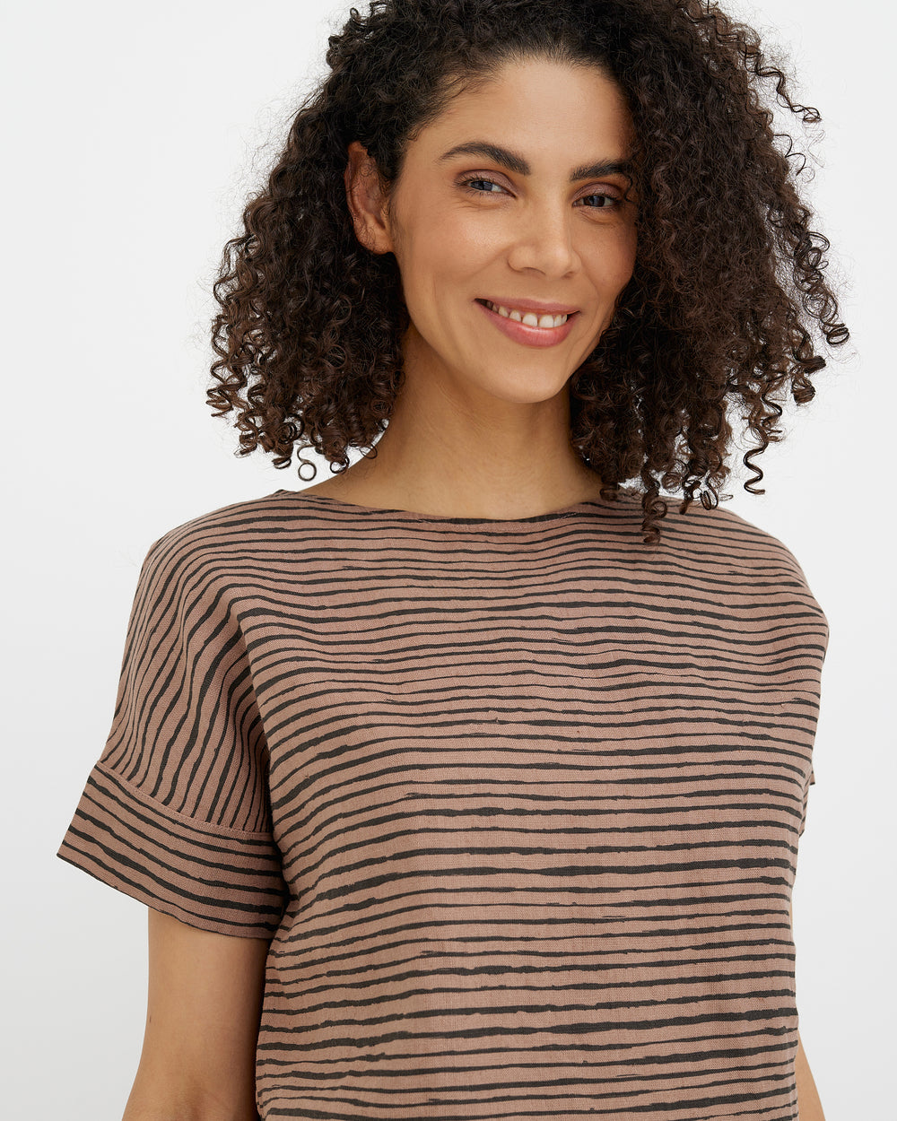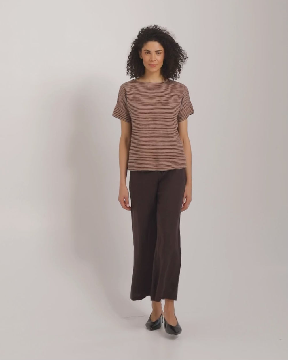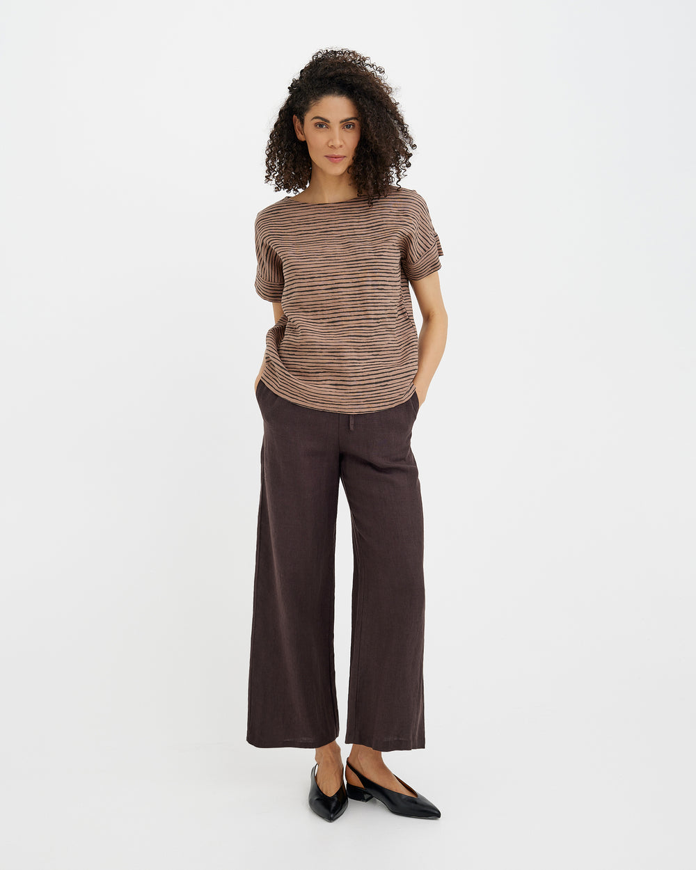 Falten sind ein natürlicher Bestandteil von Leinen, unabhängig vom Kleidungsstück. Sie sind ein Zeichen für die Qualität des Leinens: Mehr Falten bedeuten reines Leinen, weniger Falten bedeuten, dass es möglicherweise mit Baumwolle gemischt wurde. Das liegt an der geringen Elastizität der Flachsfasern, die Leinen nicht dehnbar macht und ihm gleichzeitig eine knittrige, abgenutzte Textur verleiht.