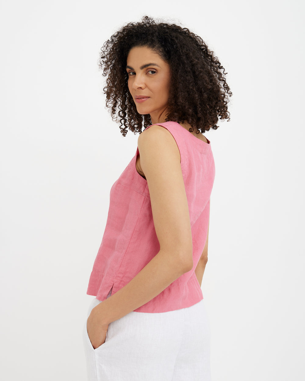 Is the Flamingo sleeveless linen top suitable for hot weather?