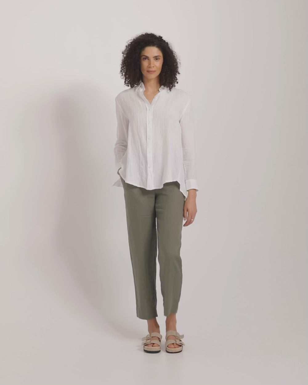 Falten sind ein natürlicher Bestandteil von Leinen, unabhängig vom Kleidungsstück. Sie sind ein Zeichen für die Qualität des Leinens: Mehr Falten bedeuten reines Leinen, weniger Falten bedeuten, dass es möglicherweise mit Baumwolle gemischt wurde. Das liegt an der geringen Elastizität der Flachsfasern, die Leinen nicht dehnbar macht und ihm gleichzeitig eine knittrige, abgenutzte Textur verleiht.