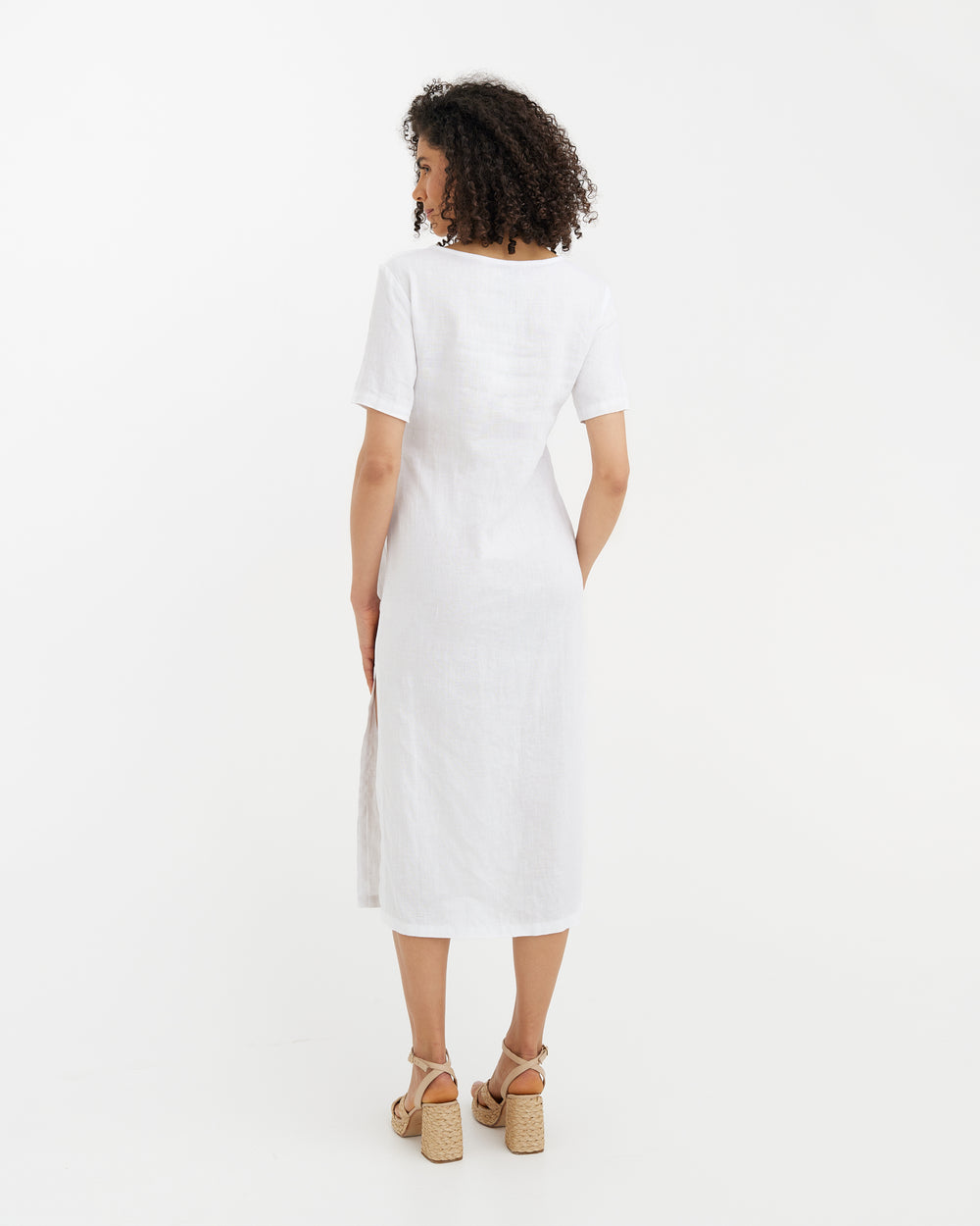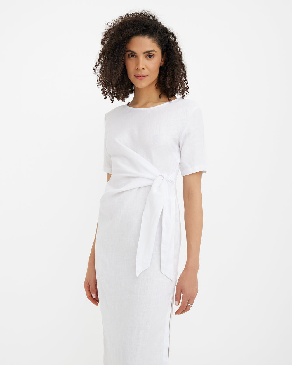 White linen may show slight translucency in strong light. Lighter underlayers can provide additional coverage.