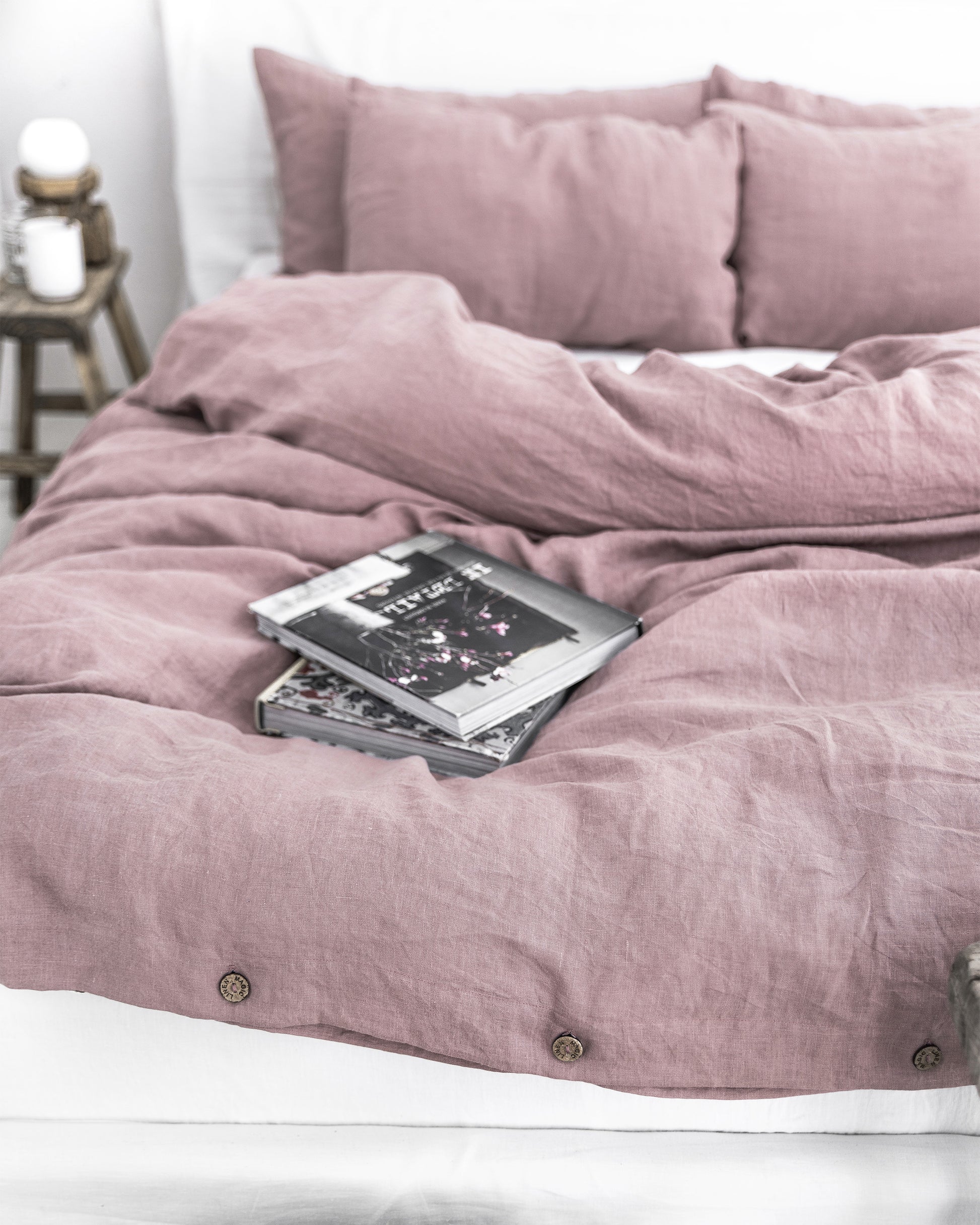 Leinenbettbezug in Altrosa. Verleihen Sie Ihrem Schlafzimmer Gemütlichkeit und verbessern Sie Ihren Schlaf mit unseren weichen, atmungsaktiven und hypoallergenen Leinenbettbezügen. Die natürlichen Eigenschaften von Leinen garantieren das ganze Jahr über ein angenehmes Tragegefühl.