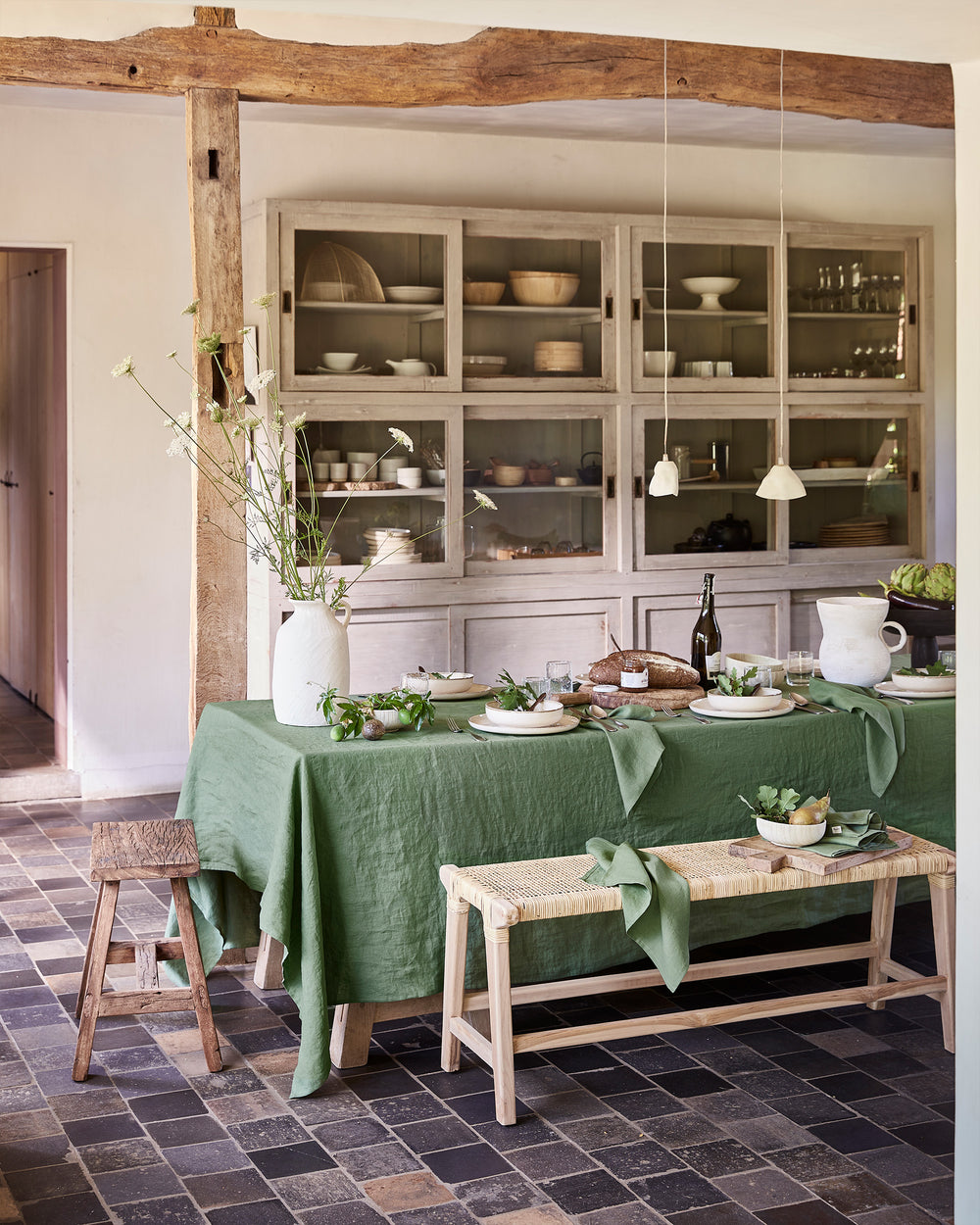 Linen napkin set in forest green color. Elevate your tablescape with a set of beautiful linen napkins. Durable yet soft and elegant, these linen napkins are easy to mix and match with other table accessories such as tablecloths, runners, and placemats.