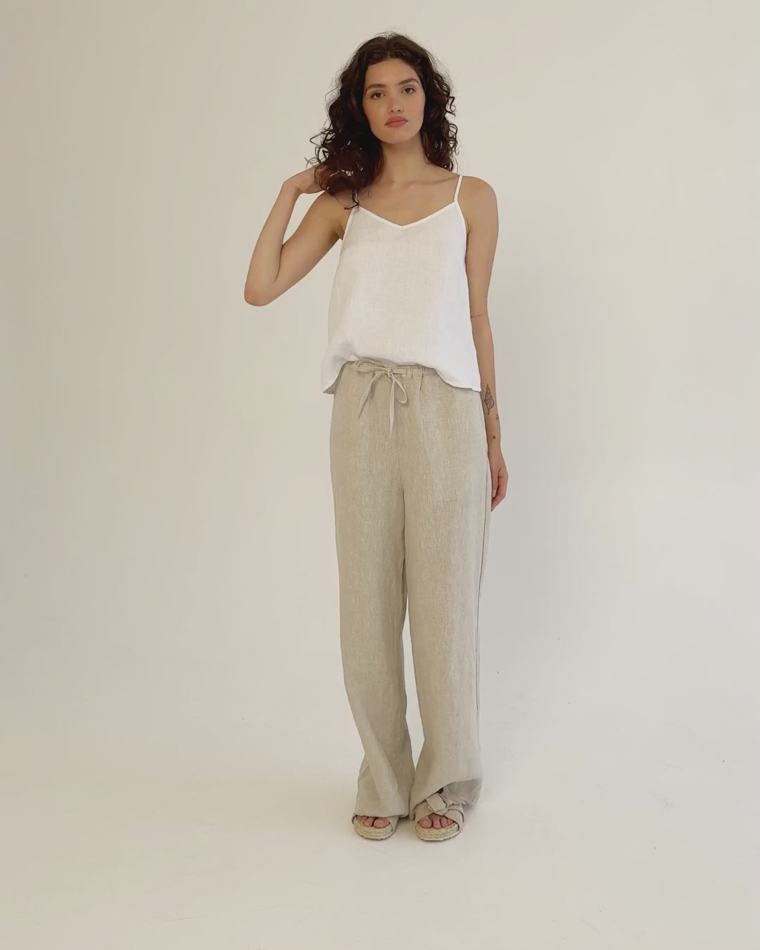 The Wide-Leg Linen Pants PEMBA in Natural melange are a timeless staple designed for comfort and effortless elegance. Featuring a relaxed, flowy silhouette, these full-length linen pants offer a breathable feel and an adjustable drawstring waistband for a perfect fit. Whether dressed up or down, they provide all-day ease and style.