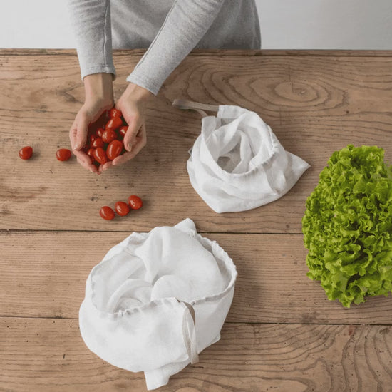This set of two OEKO-TEX® certified white linen produce bags will quickly become your go-to for weekly grocery trips. They’re perfect for keeping vegetables, fruit, and other items organized - without plastic.