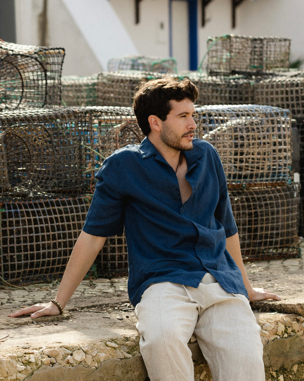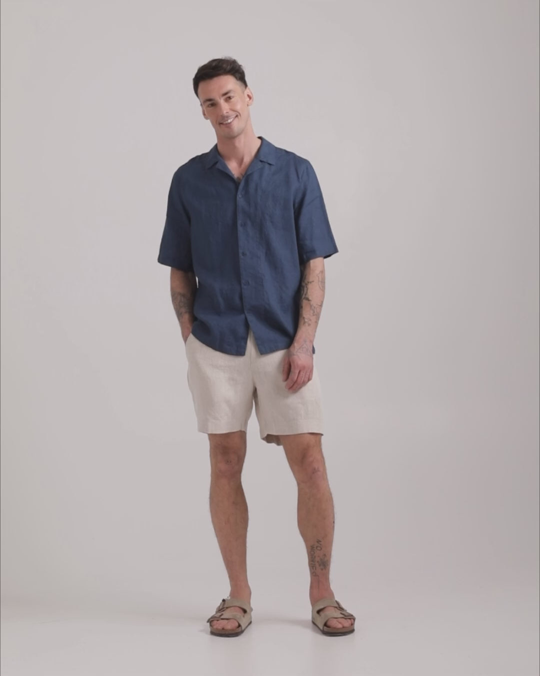 Deep Navy Blue is a saturated, cool-toned shade that anchors a summer wardrobe. It may appear richer under indoor lighting and slightly lighter in natural daylight. The midweight linen offers breathable comfort with gentle structure and reliable opacity, softening gradually with wear.