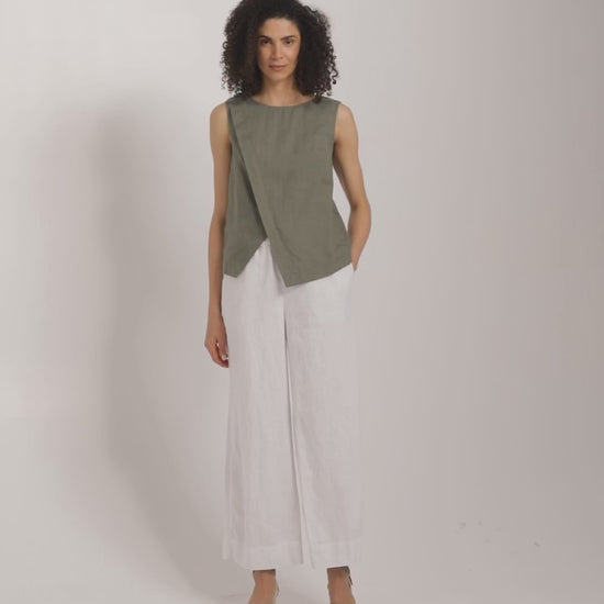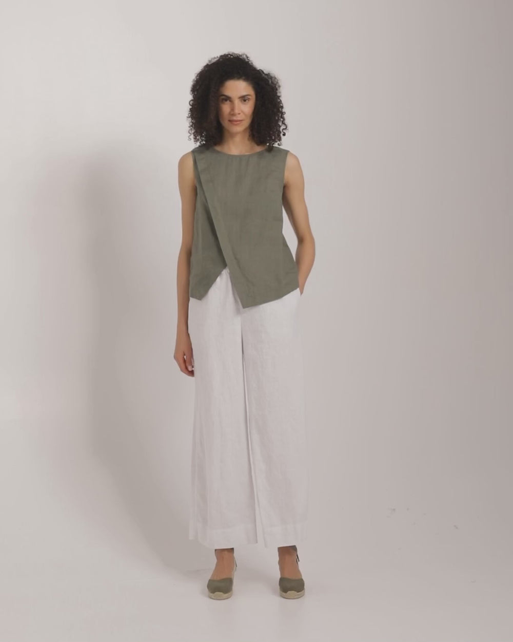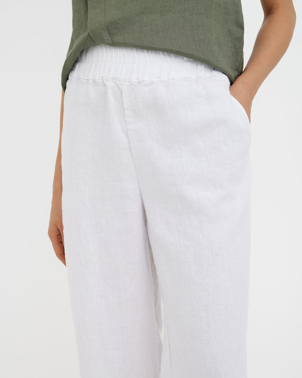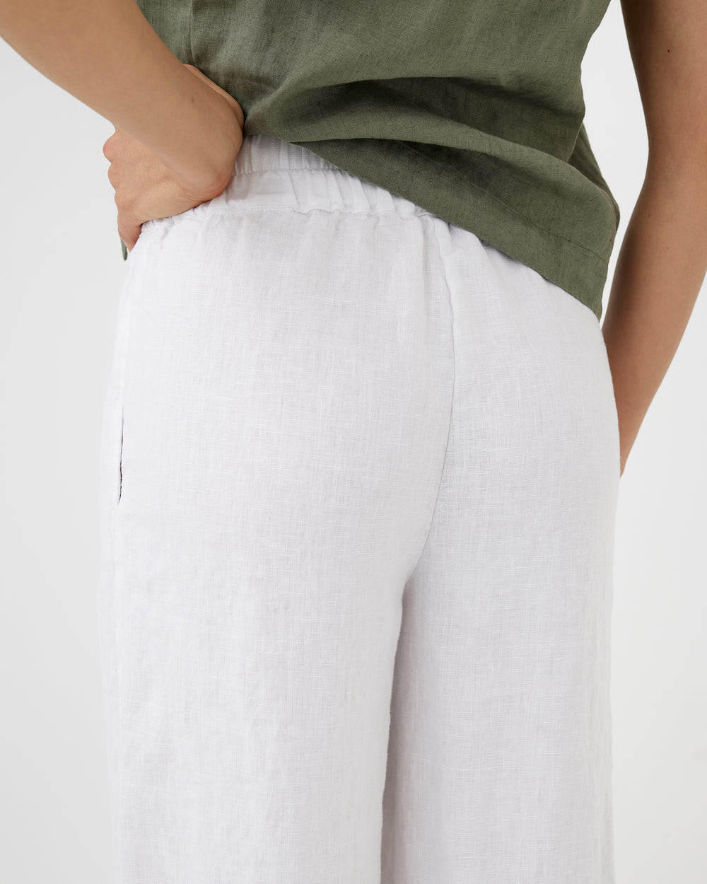 Wide leg linen pants ALCUDIA in White are made from 100% European flax linen in a breathable midweight fabric. The high-rise silhouette features an elastic waistband and a relaxed wide leg that falls straight from hip to hem.