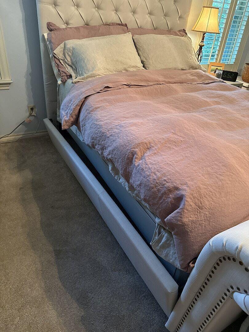 Linen duvet cover in woodrose (dusty pink) color. Add coziness to your bedroom and improve your sleep with our linen duvet covers that are soft, highly breathable, and hypoallergenic. The natural properties of linen guarantee the feeling of comfort all year round.